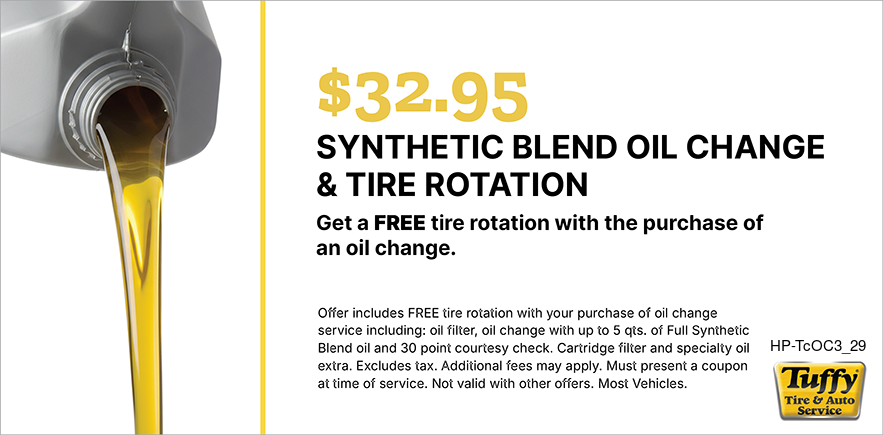 Synthetic Blend Oil Change $32.95 With FREE Tire Rotation